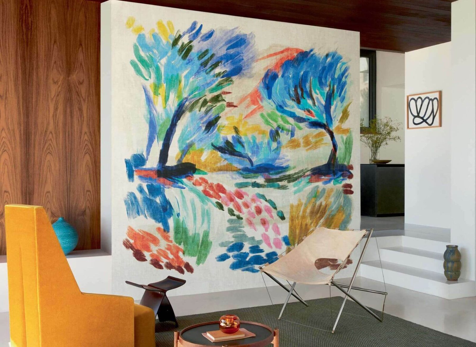Szöulban azt mondják, hogy a szerencse a Pojagi szövet redőiben rejtőzik. Amikor ez a mindennapi anyag bevonatos vászonná alakul, és foltvarrásként falra varázsolja magát, vajon a szerencse még mindig rejtőzik a textíliában? Láthattuk már újra felbukkanni az abaca és raffia szövésű nagy hálók között. A vásznon, hatalmas, egyszínű területeken, díszes díszvarrással részletezve, egy puha és nyugtató ajándék eleganciáját ölti magára. Földszínű, néha kifakult jegyeivel, melyeket generációkon át öröklött és összeillesztett, örök nyugtató dizájnelemként tartanak számon.