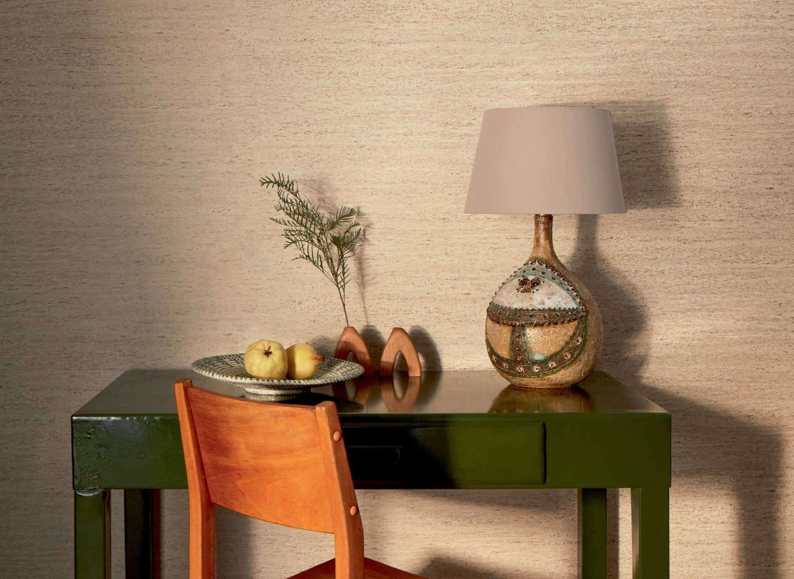 A vinilnek sikerül krétaszerű, szinte homokszerű, matt hatást létrehoznia, amely a fehérre meszelt falakra hasonlít. Ez a kollekció két kategóriájú sima burkolatra épül, egyrészt meleg színekkel, másrészt ásványi travertinnal, valamint három panorámás burkolattal.