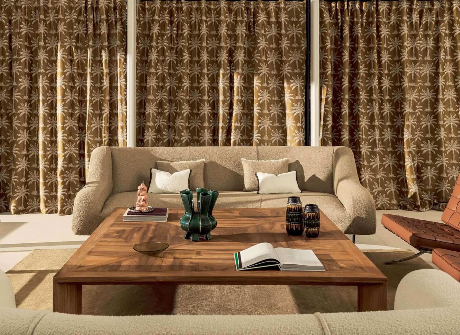 Ezek az anyagok alatt egy tengerpart fekszik. A bohém és napsütéses életre vágyva, ezek a beltéri és kültéri textíliák a kikapcsolódás jelképei, a spontaneitás hullámain lovagolva. Helyszínen rajzolt pálmafák, hatalmas halszálka-szövésű minták, színes geometrikus minták hulláma… hagyd, hogy egy trópusi szellő gyengéden ringassa lelkünket Los Angeles nyugodt hangulatában.
